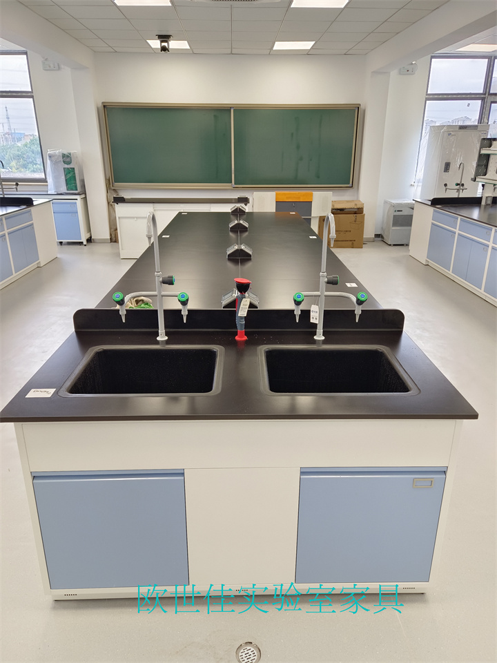全钢实验台(陶瓷台面+浅蓝色全钢柜体),满足学生多元化实验需求。