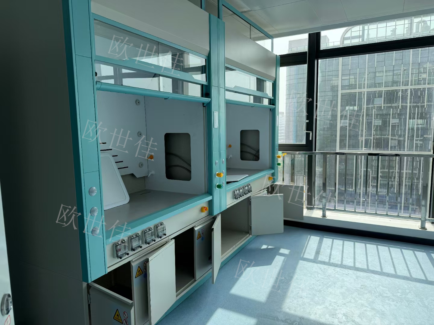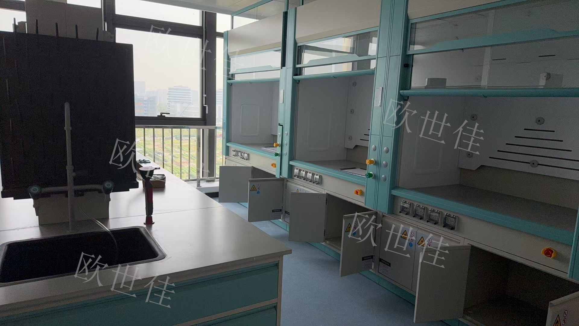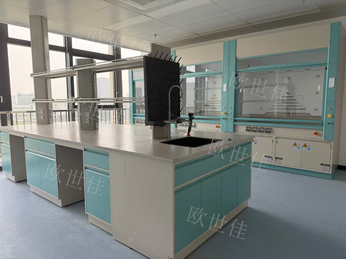 欧世佳实验室家具:陶瓷台面实验台、通风柜、更衣柜。期待与您的合作!!!